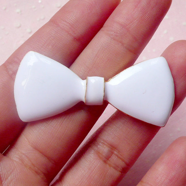 CLEARANCE Bow Metal Cabochon (White and Gold / 46mm x 20mm) Kawaii Bowtie Cabochon Cell phone Deco Decoden Scrapbooking Hair Clip Making CAB314