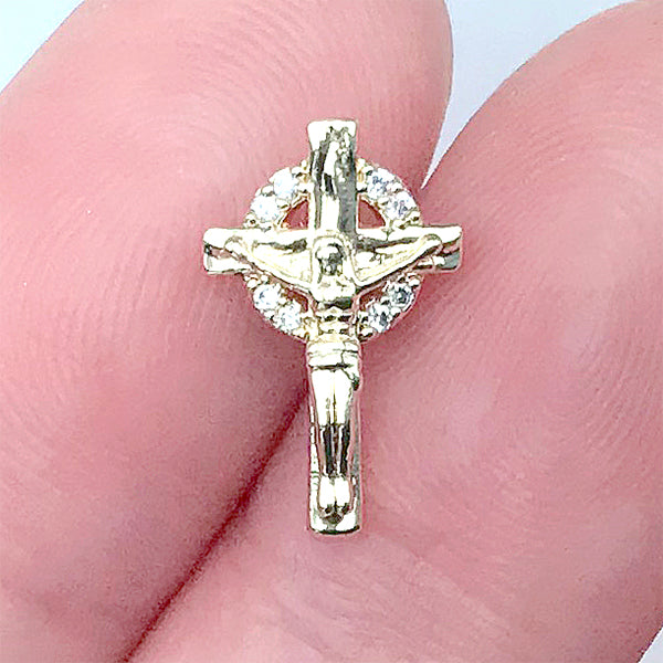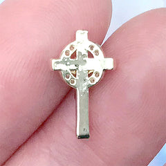 Celtic Crucifix Cross Nail Charm with Rhinestones | Religious Nail Decoration | Religion Resin Inclusion (1 piece / Gold / 9mm x 14mm)