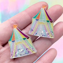 Circus House Cabochons with Glitter | Kawaii Resin Embellishment | Decoden Phone Case DIY (2 pcs / 26mm x 32mm)