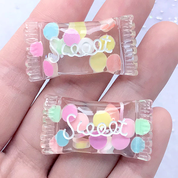 Kawaii candy cabochon with colorful polymer clay circle dot. Excellent for phone case decoden project, mixed media art, scrapbooking, party supplies, kawaii jewelry and accessories making, etc.