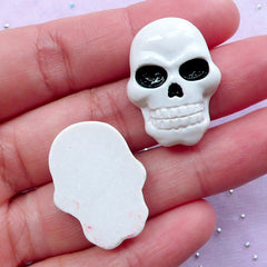 Creepy skull cabochon with flat back. Made with resin. Can be glue to any flat surface. Perfect for Halloween decoration, jewelry and accessory making, phone case decoden, scrapbooking, mixed media art and much more.