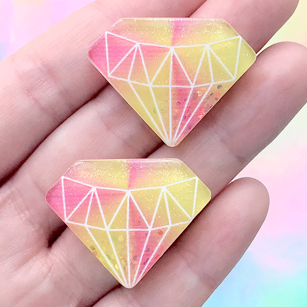 Diamond Cabochon with Glitter | Kawaii Decoden DIY | Resin Embellishment for Phone Decoration (2 pcs / Yellow & Red / 32mm x 24mm)