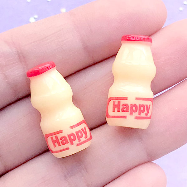 Doll House Milk Drink Bottle in 1:6 Scale | Miniature Beverage | 3D Dollhouse Grocery Supplies (2 pcs / Red Happy / 11mm x 23mm)