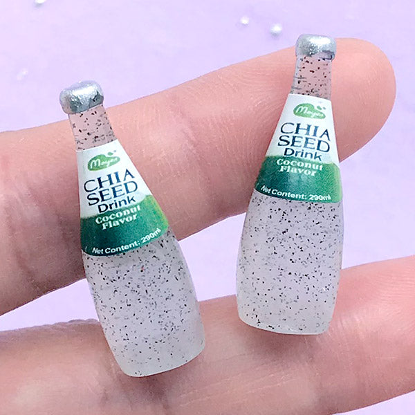 Dollhouse Beverage in 1:6 Scale | Miniature Supermarket Groceries | 3D Doll House Coconut Chia Seed Drink Bottle Cabochons (2 pcs / 11mm x 32mm)