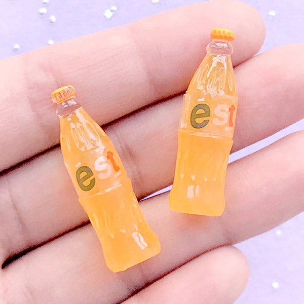 CLEARANCE Dollhouse Miniature Orange Soda in 1:6 Scale | 3D Doll House Soft Drink Bottle | Faux Food Jewelry DIY (2 pcs / Orange / 10mm x 33mm)