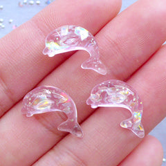Tiny mini dolphin cabochons embedded with iridescent mica flakes. Excellent for phone case decoden project, mixed media art, scrapbooking, kawaii jewelry and accessories making, etc.