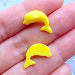 CLEARANCE Dolphin Resin Cabochons | Fish Cabochon | Phone Case Decoden Supplies | Kawaii Embellishments | Scrapbook (3pcs / Yellow / 9mm x 17mm / Flatback)