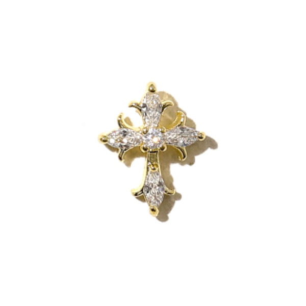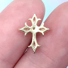 Floriated Cross Nail Charm with Rhinestones | Catholic Nail Art | Religion Resin Inclusion | Luxury Embellishment (1 piece / Gold / 11mm x 13mm)
