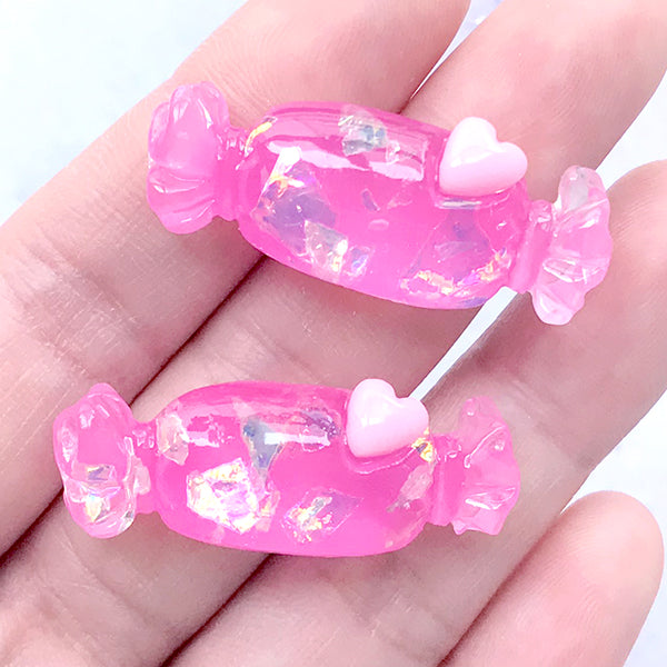 Kawaii candy cabochon with iridescent glitter flakes. Excellent for phone case decoden project, mixed media art, scrapbooking, party supplies, kawaii jewelry and accessories making, etc. Quantity: 2...