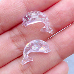 Tiny mini dolphin cabochons embedded with iridescent mica flakes. Excellent for phone case decoden project, mixed media art, scrapbooking, kawaii jewelry and accessories making, etc.