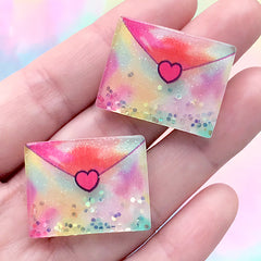 Glittery Love Letter Cabochons | Magical Decoden Pieces | Kawaii Resin Embellishment for Phone Case Deco (2 pcs / 27mm x 21mm)