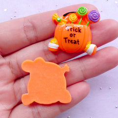 Halloween candy bowl cabochon with flat back. Made with resin. Can be glue to any flat surface. Perfect for Halloween decoration, jewelry and accessory making,...