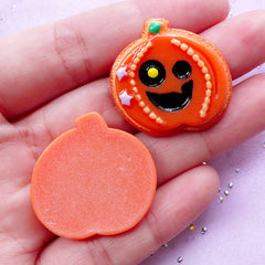 Halloween Pumpkin Resin Cabochons | Flat Back Decoden Pieces (2 pcs / 28mm x 27mm)