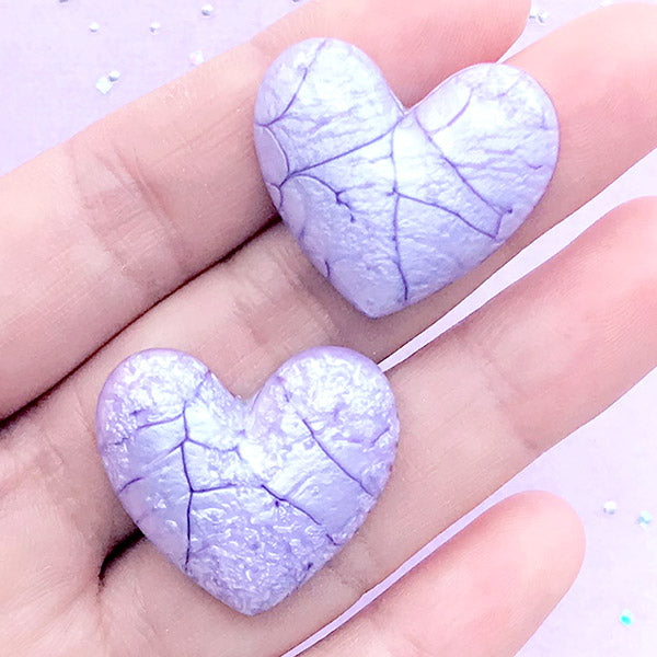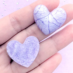 Heart Cabochon with Cracked Marble Pattern | Puffy Heart Embellishment | Kawaii Decoden Piece (2 pcs / Purple / 27mm x 24mm)