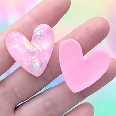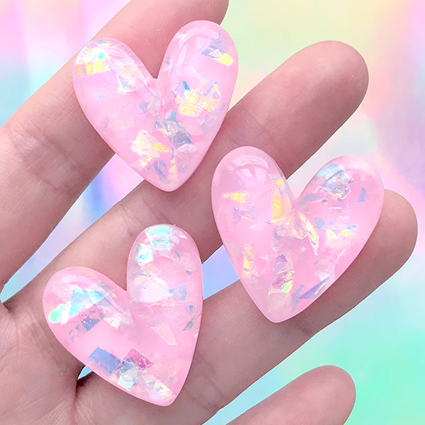 Heart Decoden Cabochon with Iridescent Glitter | Kawaii Phone Case DIY | Resin Embellishment Supplies (3 pcs / Pink / 27mm x 27mm)
