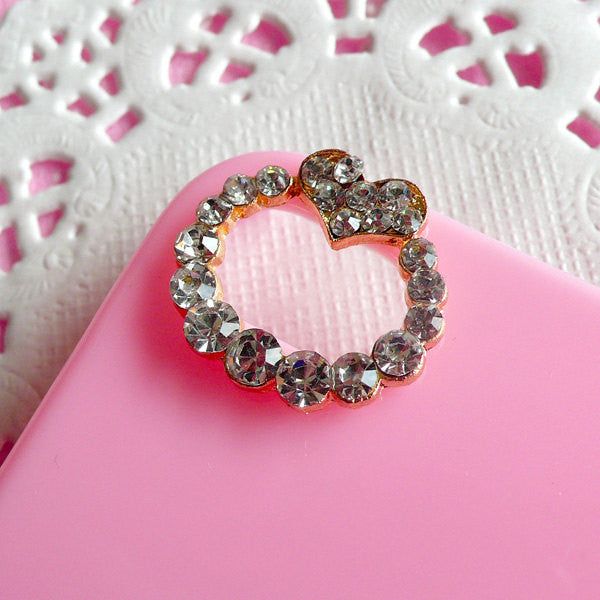 Rhinestone wreath with heart cabochon for camera hole decoration of iPhone 4 case. Size: approx 1.9cm (W) x 1.8cm (L) / 0.74" (W) x 0.7"...