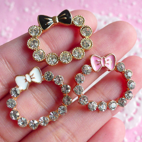 iPhone 4 Case Decoration / Camera Lens Hole Deco / Bling Bling Wreath Cabochon with Bow (3pcs / Pink, White & Black) Decoden Supplies CAB097