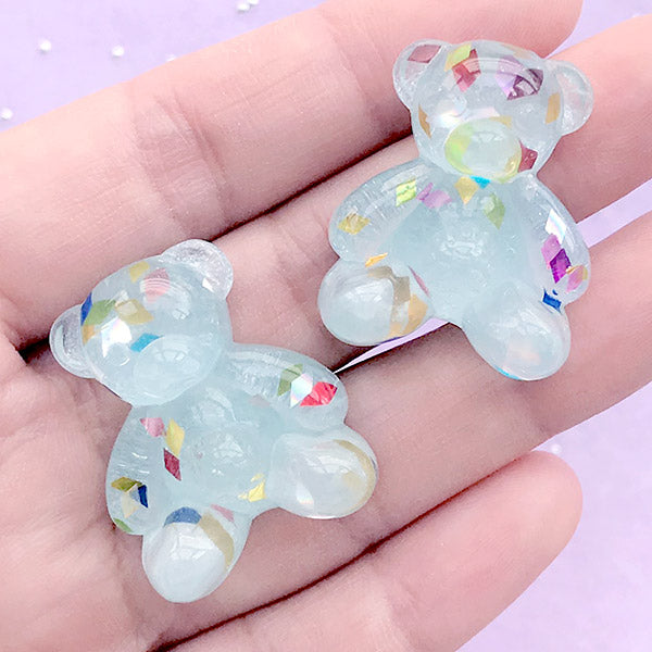 Kawaii bear resin cabochon with colorful confetti. Excellent for phone case decoden, mixed media art, scrapbooking, card making, party supplies, kawaii jewelry and accessories making, etc. Quantity: 2...