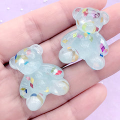 Kawaii bear resin cabochon with colorful confetti. Excellent for phone case decoden, mixed media art, scrapbooking, card making, party supplies, kawaii jewelry and accessories making, etc.