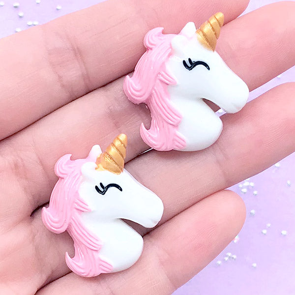 Kawaii Cabochon Supplies | Resin Unicorn Cabochons | Phone Case Decoden Pieces | Slime Embellishments (2 pcs / Pink / 24mm x 28mm)