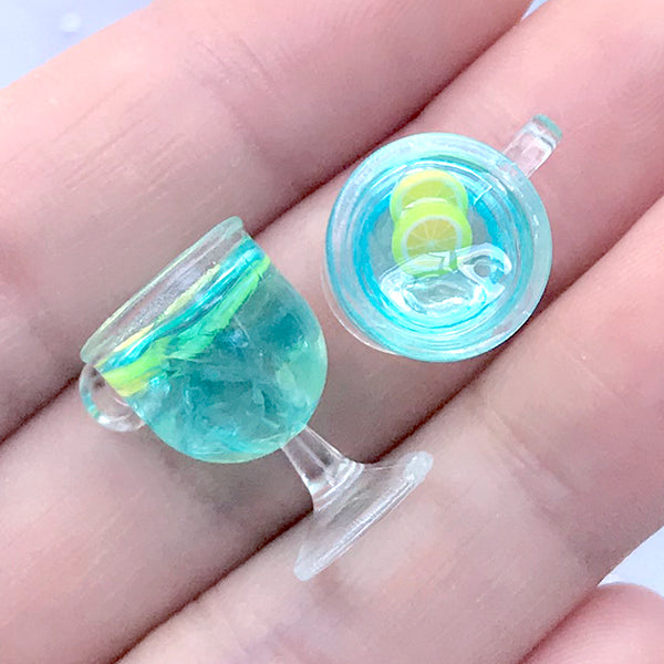 Kawaii Fruit Punch Charm | Miniature Food Jewellery DIY | Dollhouse Beverage Cabochon (2 pcs / Lemon / 12mm x 18mm)