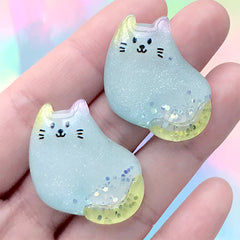 Glittery cat resin cabochon. Excellent for phone case decoden, mixed media art, scrapbooking, card making, party supplies, kawaii jewelry and accessories making, etc.