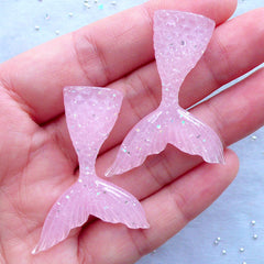 Kawaii Resin Cabochons | Mermaid Tail Cabochon with Glitter | Mermaid Decoden Phone Case (2pcs / Pink / 31mm x 44mm / Flatback)