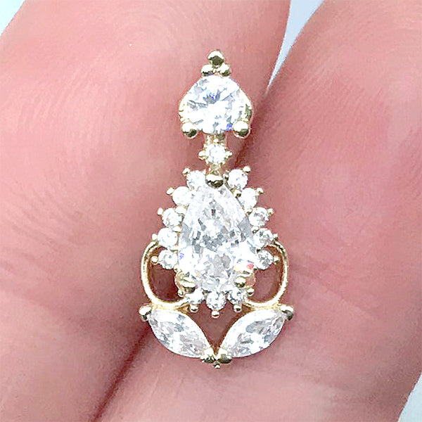 Luxury Nail Art Charm with Rhinestones | Bling Bling Embellishment | Nail Design Supplies (1 piece / Gold / 8mm x 17mm)
