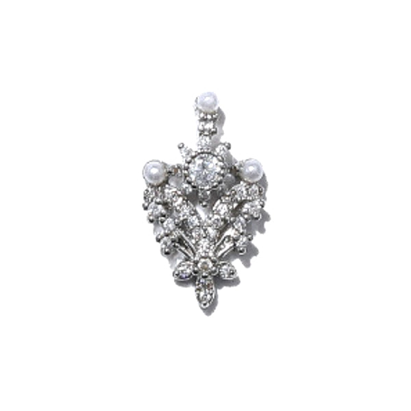 Luxury Rhinestone Nail Charm with Pearls | Sparkle Embellishment for Nail Design | Bling Bling Resin Inclusion (1 piece / Silver / 11mm x 18mm)