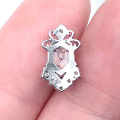 Luxury Royal Badge Shaped Nail Charm with Rhinestones | Sparkle Embellishment for Nail Art | Kawaii Resin Craft Supplies (1 piece / Silver / 8mm x 13mm)