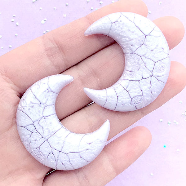Kawaii moon resin cabochon with cracked marble pattern. Excellent for phone case decoden, mixed media art, scrapbooking, card making, party supplies, kawaii jewelry and accessories making, etc.
