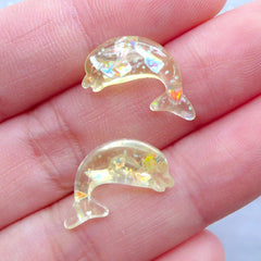 Tiny mini dolphin cabochons embedded with iridescent mica flakes. Excellent for phone case decoden project, mixed media art, scrapbooking, kawaii jewelry and accessories making, etc.