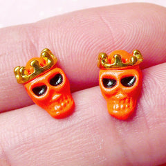 Mini Skull Head w/ Crown Cabochons (2pcs) (Orange and Gold) Fake Miniature Cupcake Topper Earring Making Nail Art Decoration NAC146