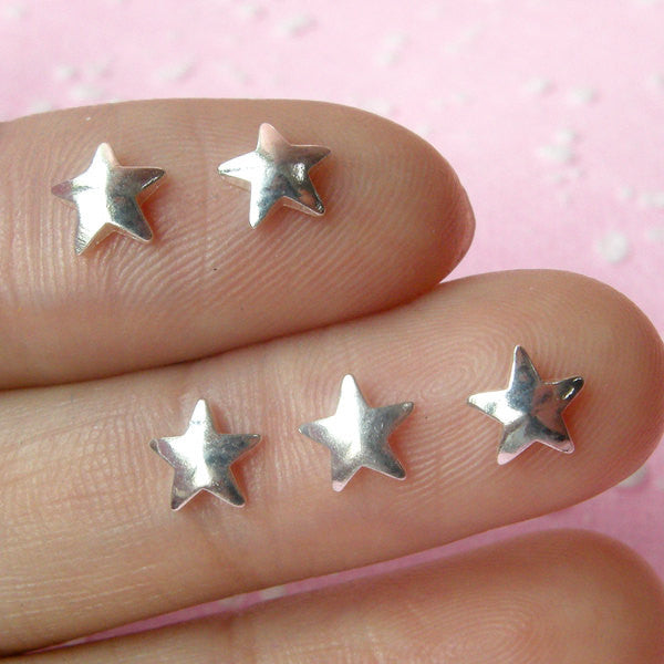 Mini Star Cabochon Set (Silver) (5pcs) (6mm) Fake Miniature Cupcake Topper Nail Art Decoration Scrapbooking NAC041