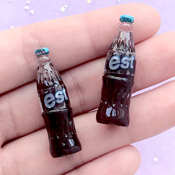 1:6 Scale Miniature Soda Bottle | Dollhouse Beverage | 3D Doll House Soft Drink | Kawaii Jewelry Supplies (2 pcs / Brown / 10mm x 33mm)