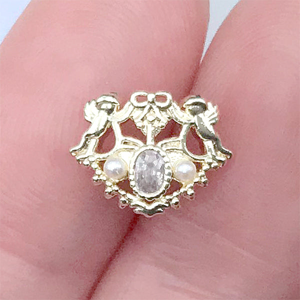 Nail Charm with Rhinestone and Pearls | Metal Embellishment for Resin Jewelry DIY | Nail Decoration (1 piece / Gold / 12mm x 9mm)