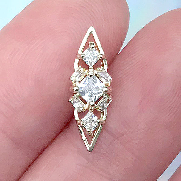 Navette Nail Charm with Rhinestones | Sparkle Nail Art Design | Luxury Embellishment for Resin Jewelry DIY (1 piece / Gold / 6mm x 16mm)