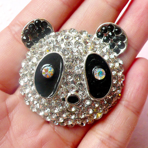 1 piece of bling bling metal panda cabochon. Great for cell phone deco, scrapbooking, jewelry making, etc. Color: Silver with AB Clear, Clear and Black...
