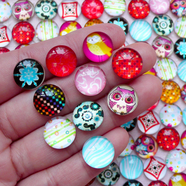 CLEARANCE Photo Cabochons / Picture Dome Cabochon / Round Cabochon with Image (6pcs by RANDOM / 12mm / Flat Back) DIY Earrings Pendant CAB395