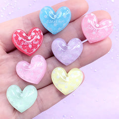 Cute polka dot heart cabochons! Set of 7 colors. Great for phone case decoden, mixed media art, scrapbooking, card making, party supplies, kawaii jewelry and accessories making, etc.