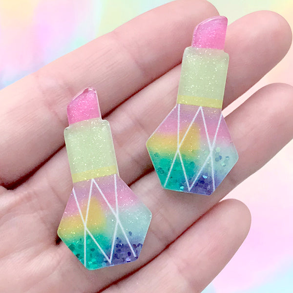 Rainbow Gradient Lipstick Cabochons with Glitter | Kawaii Beauty Embellishment | Phone Case Decoden Supplies (2 pcs / 21mm x 39mm)