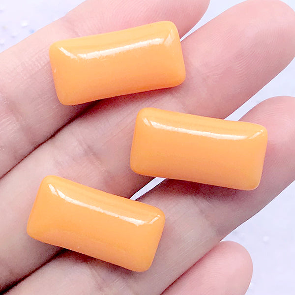 Realistic Chewing Gum Cabochons | Fake Food Embellishments | Novelty Jewelry Supplies | Kawaii Decoden (3 pcs / Orange / 11mm x 21mm)