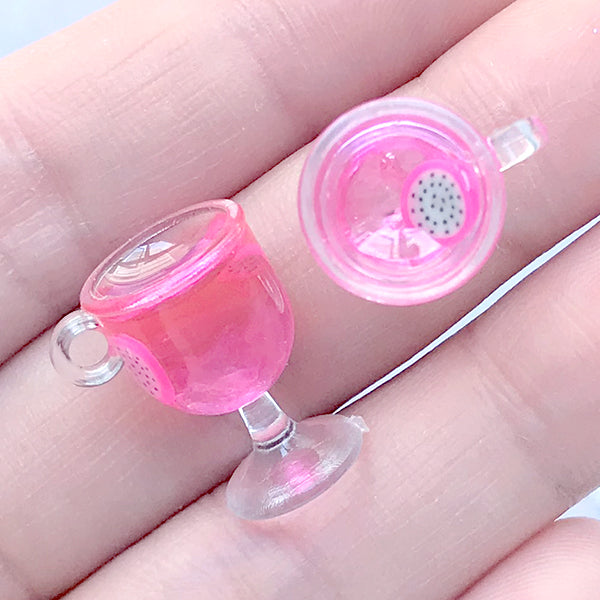 Resin Fruit Punch Charm | Miniature Food Jewelry Making | 3D Dollhouse Beverage | Kawaii Doll Drink Cabochon (2 pcs / Dragon Fruit / 12mm x 18mm)