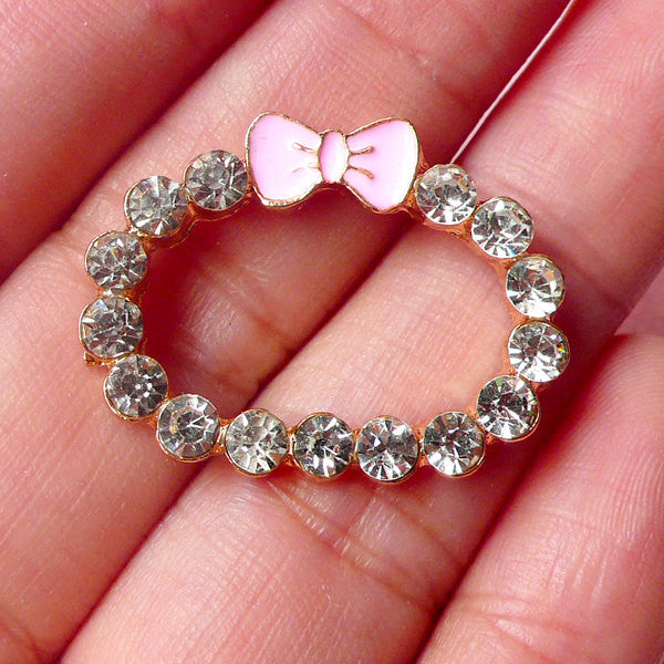 CLEARANCE Rhinestone Wreath Cabochon with Bow for iPhone 5 and 6 Case / Bling Bling Camera Hole Decoration (Pink) Lolita Phone Case Decoden Supplies CAB317