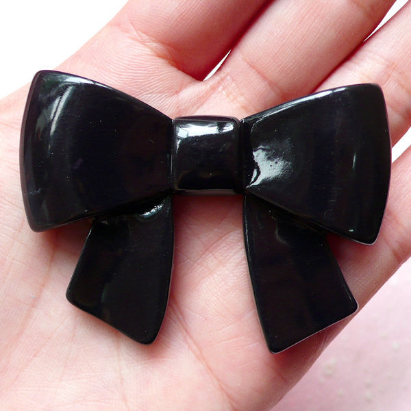 Ribbon Cabochon (59mm x 46mm / Black) Kawaii Big Cabochon Cell phone Deco Decoden Scrapbooking Home Decor CAB337