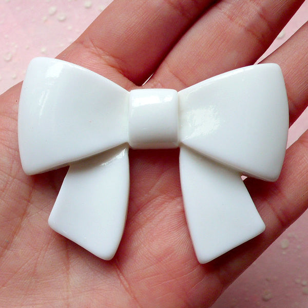 Ribbon Cabochon (59mm x 46mm / White) Kawaii Big Cabochon Cell phone Deco Decoden Scrapbooking Home Decor CAB340