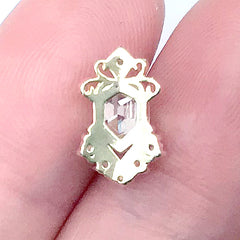 Royal Badge Shaped Nail Charm with Sparkle Rhinestones | Luxury Embellishment for Nail Deco | Kawaii Resin Art Supplies (1 piece / Gold / 8mm x 13mm)