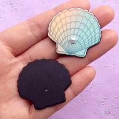 Scallop Shell Acrylic Cabochon with Pearl | Seashell Embellishments | Kawaii Mermaid Decoden | Beach Decor (2pcs / 35mm x 32mm)