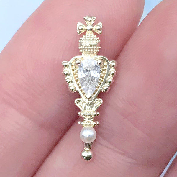 Scepter Nail Charm with Rhinestone and Pearl | Royal Embellishment for Kawaii Resin Art | Luxury Nail Decoration (1 piece / Gold / 8mm x 20mm)