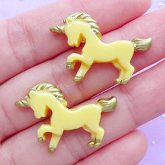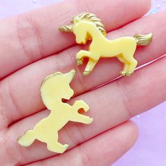 CLEARANCE Small Unicorn Cabochons | Kawaii Decoden Pieces | Fairy Tale Animal Cabochon | Magical Jewellery DIY | Resin Embellishments (2pcs / Yellow / 28mm x 20mm / Flat Back)